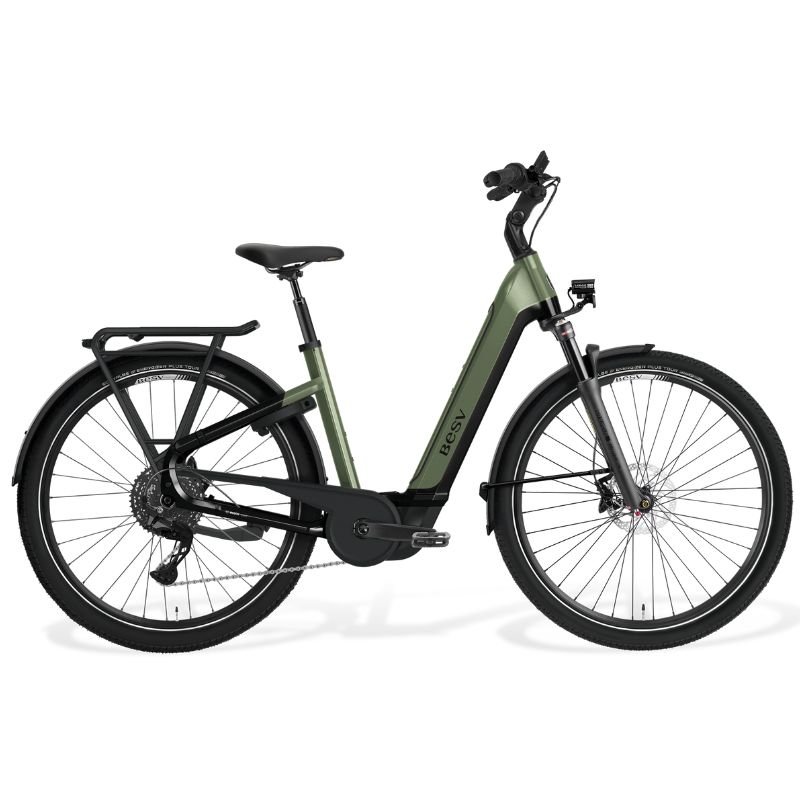 CADREBESV TR-B Série 1, cadre en alliage soudé lisse, compatible avec le système Bosch eBike, support moteur Gen.5 COULEURS)Vert automnal avec des reflets noirs TAILLESS (47 cm), M (52 cm), L (56 cm) FOURCHETTESR Suntour Mobie34, Amortissement à air, pivot conique en alliage, débattement de 80 mm, axe traversant PORTE-BAGAGES ARRIÈREStandwell, avec plateforme MIK HD et pince à ressort AilesGarde-boues SKS PET A65R |