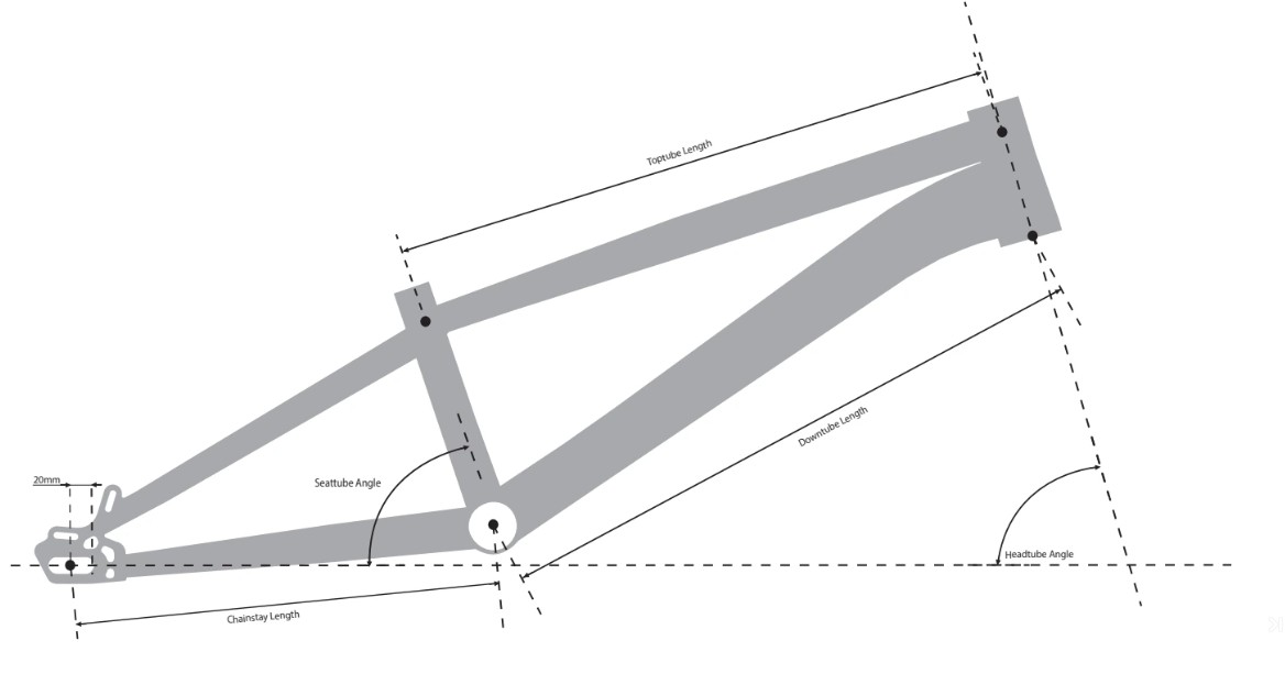Down Tube | Longueur Base Arrière | Angle de direction | Angle tube de selle | Douille de direction | Diamètre de tige de selle | Standard moyeu arrière | Boitier de pédalier | Type d’étrier de frein à disque | Poids (Fabricant) | |