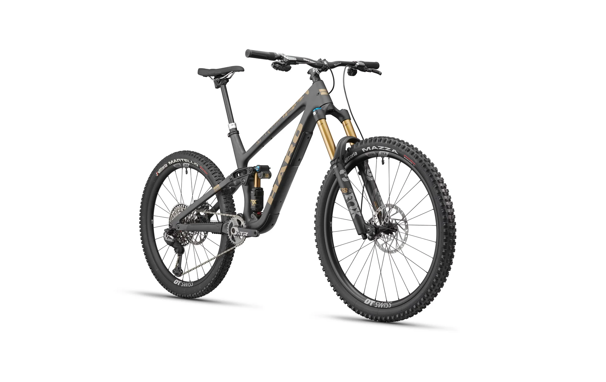 Le cadre Greer en carbone haute densité n’est pas seulement beau, il est intelligent. Sa cinématique a été affinée pour travailler en symbiose avec l’amortisseur FOX Float X2 Factory. Que vous soyez sur un saut de 10 mètres ou dans un dévers gras, le vélo conserve une assiette parfaite. Les roues en carbone complètent l’ensemble en apportant une rigidité latérale qui permet des trajectoires d’une précision chirurgicale.